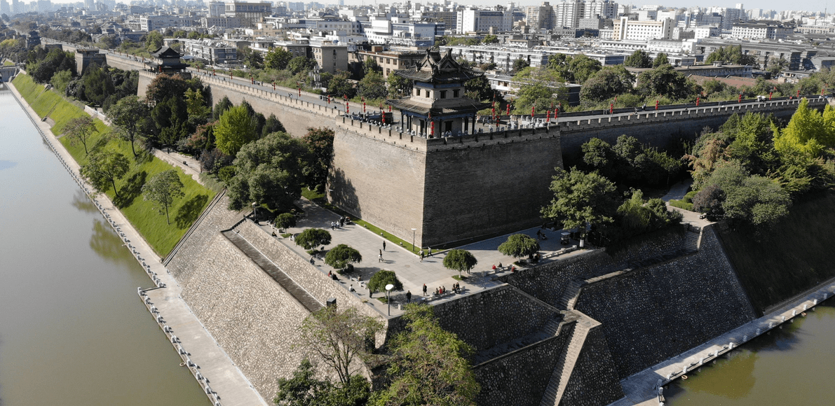 比如我国现存规模最大、保存最完整的西安古城墙。