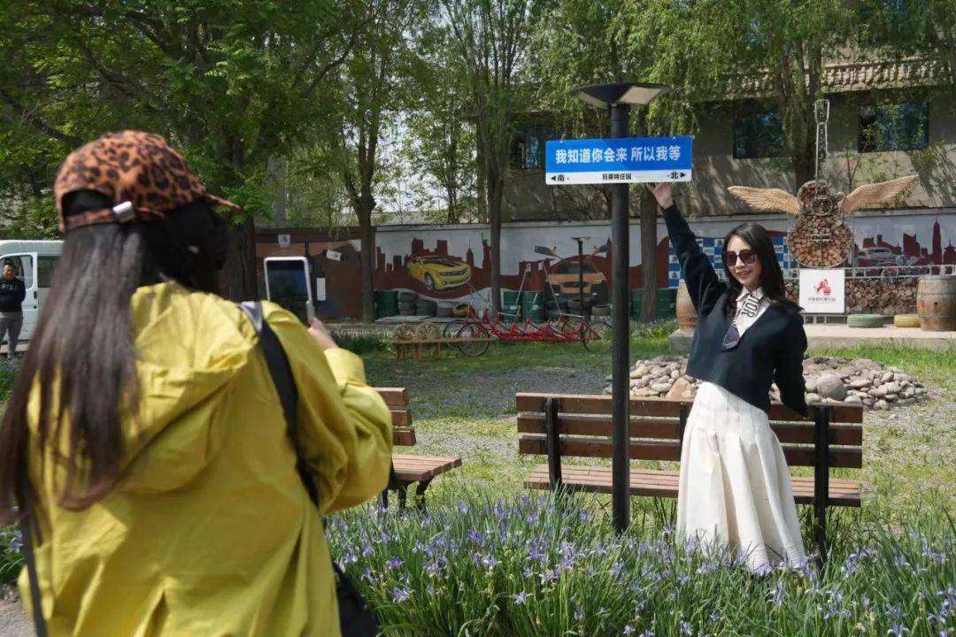 ▲“五一”假期来临之前,在北京大兴富有“京南吐鲁番”美誉的采育镇,游客在玛莱特红酒庄园内打卡拍照。新京报记者 王巍 摄
