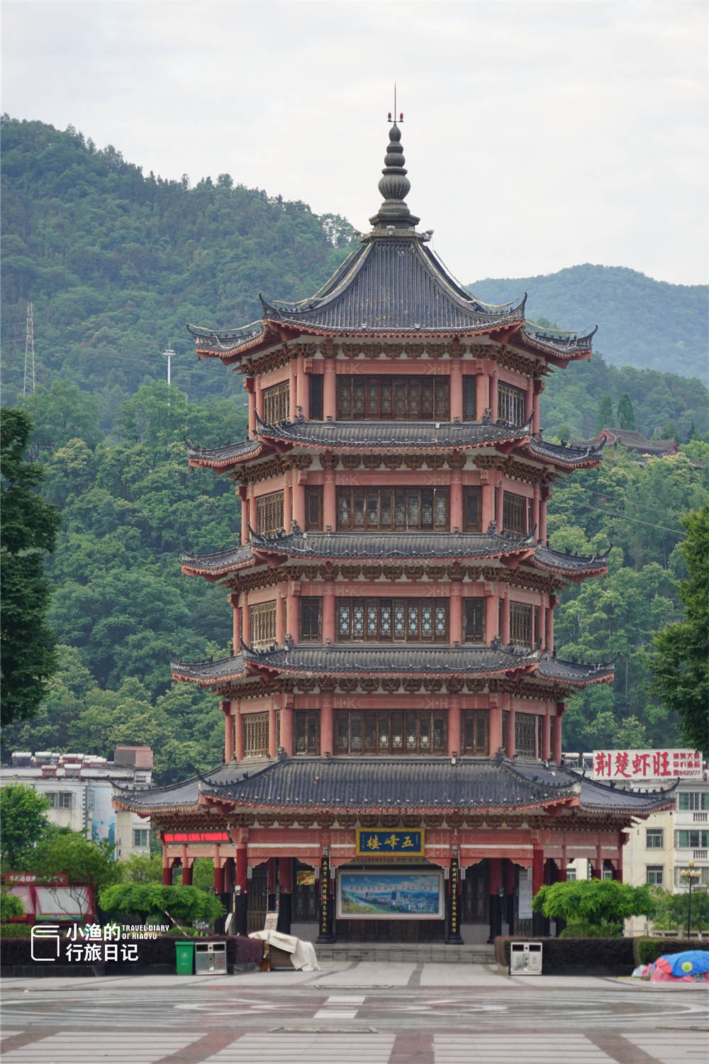 平利县城一边靠着五峰山,一边临着坝河。县城主街道就在五峰山和坝河之间,中心地带有个女娲广场,中间是雄伟的五峰楼。