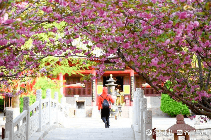 记者 周青先 通讯员 杨志礼 4月28日,山东省荣成市石岛湾畔赤山山谷内,上万株晚樱正盛开,将山谷染成粉红色。 半岛东端的海边气温低物候延迟,这里的樱花比济南晚了20多天才绽放,刚好五一节迎宾。娇嫩的花朵灿烂夺目,颜色有红白粉等色系,如轻纱似彩霞,给赤山穿上了艳丽的春装。