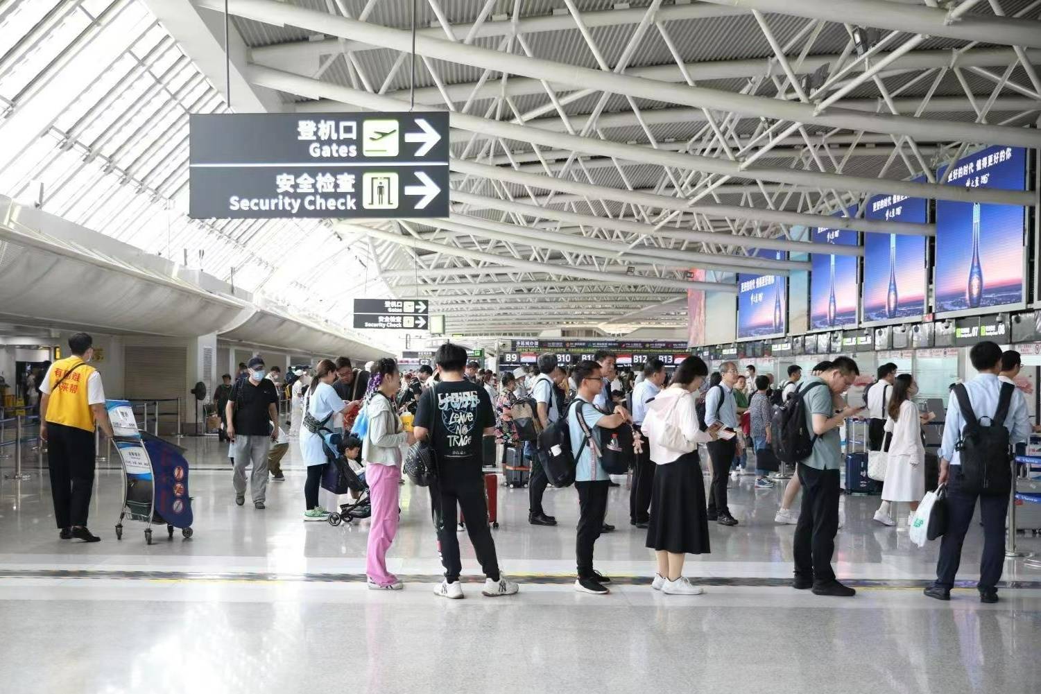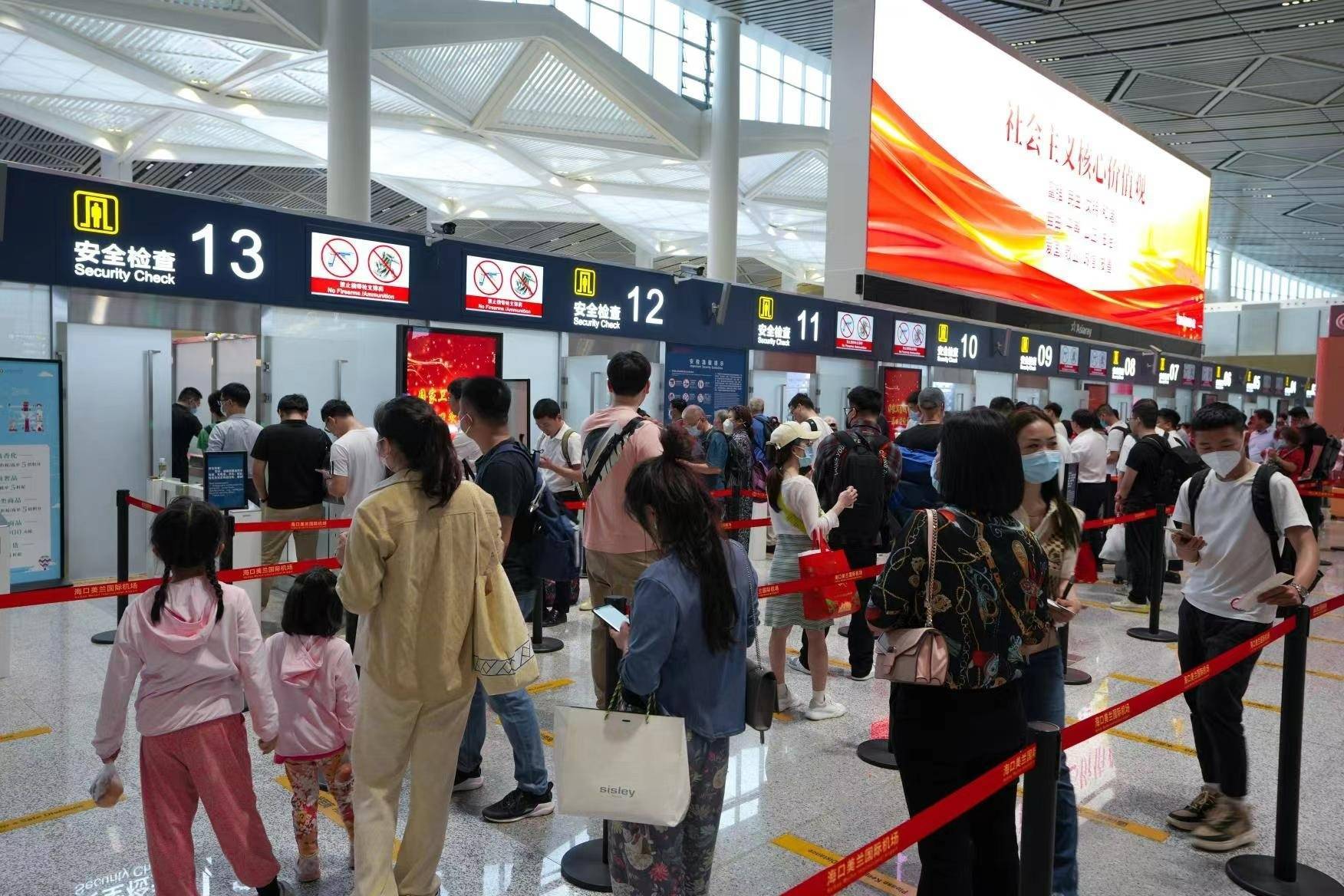旅客在机场内排队值机(央广网发 三亚凤凰国际机场供图)
