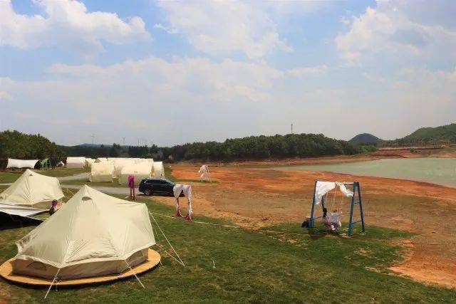 旧县街道九龙湖月亮湾露营基地,交通方便、设施完善、依山傍水、风景优美,滑梯、秋千、拍照打卡地标等一应俱全,无论是亲子游还是朋友聚都是不二之选。