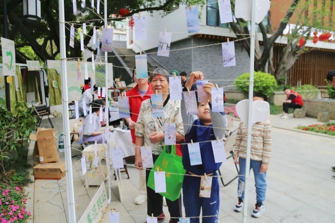 此外,“故事流转站”也是参与者众。只需在艺术卡片上写下2个小故事便可以在故事挂墙中交换1个陌生人的故事和1份大梦手绘明信片,有趣程度满分!一些小小朋友甚至用拼音、绘画的方式参与交换,可爱极啦!