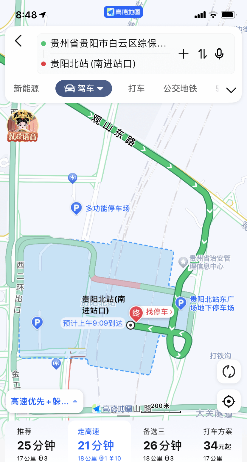 建议送客车辆,可通过观山东路-站东路和西二环-阳关隧道两条道路,直接进入北站南落客平台,行车更为畅通,避免因北进口通道拥堵耽误乘客进站。