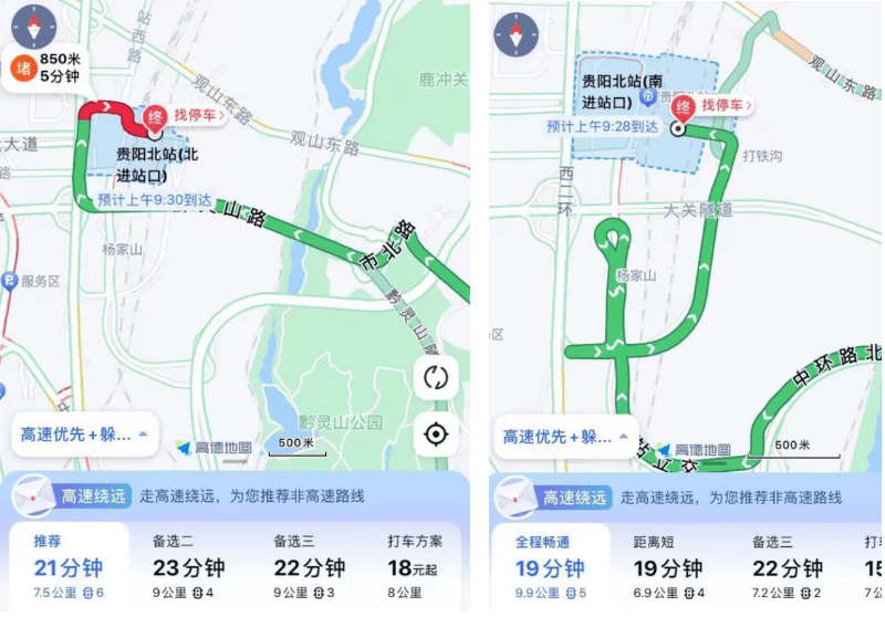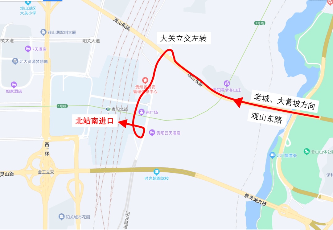 路线3:白云、观山湖方向车流均可通过观山东路抵达北站南进口,回避北进口拥堵。