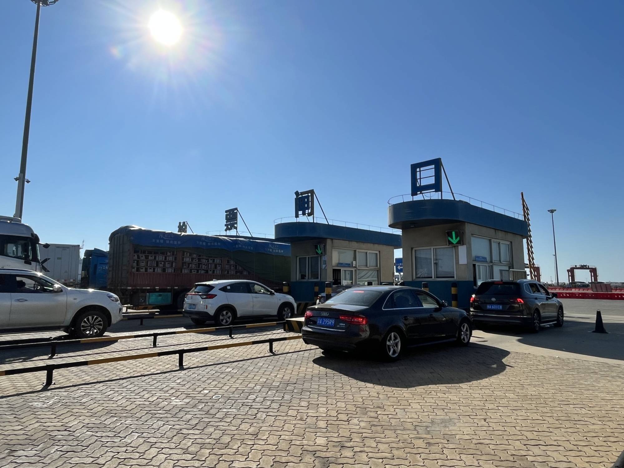 资料图:待渡车辆通过检票闸口(央广网记者 蔡文娟 摄)