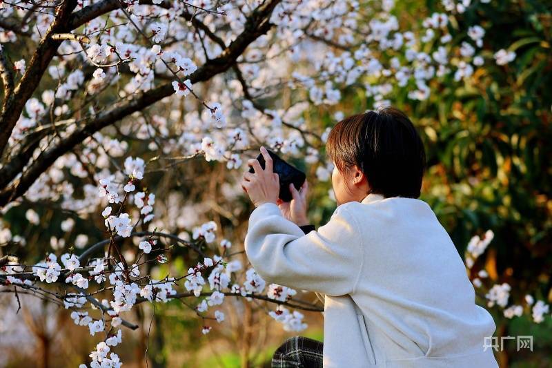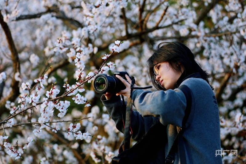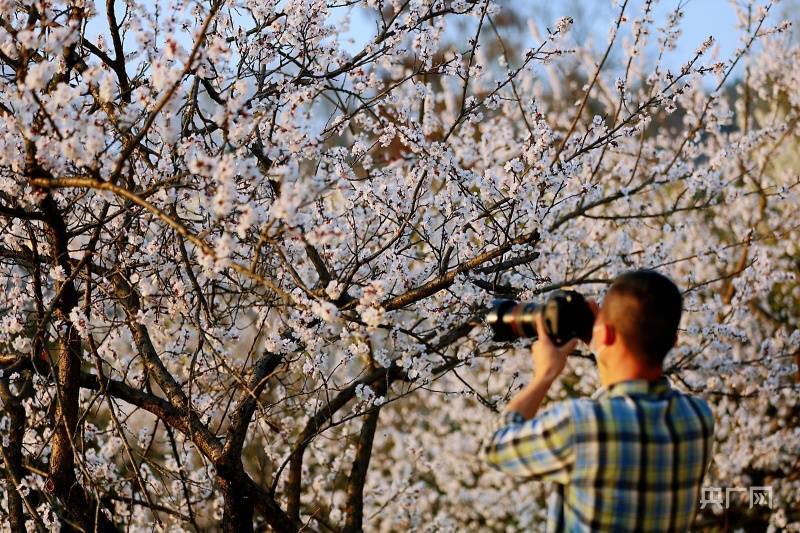 在贵阳市清镇市新店镇杏花盛放,吸引摄影爱好者前来拍照(央广网记者 任振国 摄)