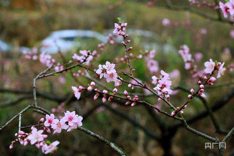 黔东南州凯里市炉山镇甘坝村桃花烂漫盛开,迎风舞动(央广网记者 任振国 摄)