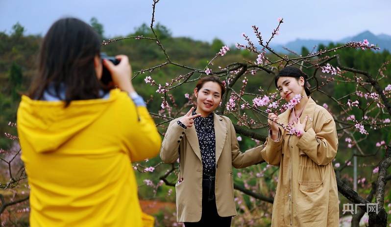 黔东南州凯里市炉山镇甘坝村桃花盛开,吸引游客赏花拍照(央广网记者 任振国 摄)