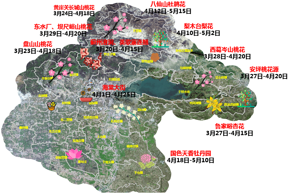 蓟州区:3月29日-4月20日(盘山、黄崖关长城)