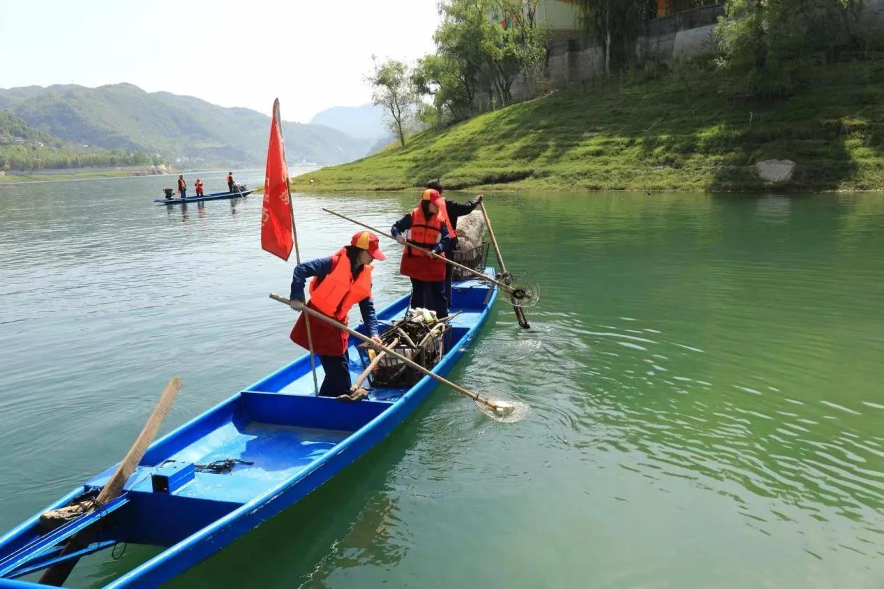 瀛湖库区在汉江干流上,是南水北调中线工程重要水源地。为保证一泓清水永续北上,国网安康水电厂干部职工以当好“秦巴卫士”和南水北调中线工程安全水源涵养区“护水使者”为己任,始终坚持生态优先、绿色发展,统筹推进发电、防汛和生态保护。自2014年,国网安康水电厂贯彻安康市市委市政府关于《安康市汉江流域水质保护条例》和《瀛湖漂浮物打捞治理暂行方案》等文件精神,落实国网陕西省电力有限公司要求,成立共产党员漂浮物打捞队,建立长效工作机制,开展常态化巡察打捞,常年坚持在77平方公里的责任水域打捞漂浮物,全力保障秦巴生态文明建设。