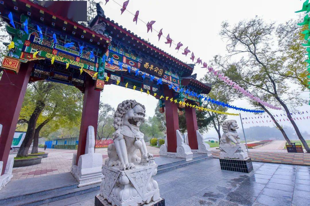 公园拥有多种时令花卉,名木古树。双檐亭,垂花门始建于1990 年仿造北京颐和园的样式进行建设的,12生肖、银湖是1958 年人工挖掘而成,军民友谊塔和汉白玉雕成的菏花仙子遥相呼应。新区占地面积七公顷, 是由原来的沼泽地修成了荷花池, 池上建有九曲桥, 池边建有朝阳阁、皓月亭等仿古建筑,雨亭公园中最具文化底蕴的景点是位于园区东北角的小碑林, 碑林中大部分都是清代的古墓碑,还有一座唯一文字保存比较完美的崔氏德政碑,由碑林向南,是崔富坤于民国十九年修建的另一处景点——假山,也是公园的制高点。山上有一座铁制的双檐亭叫晶靓亭,站在这里园中景色尽收眼底。
