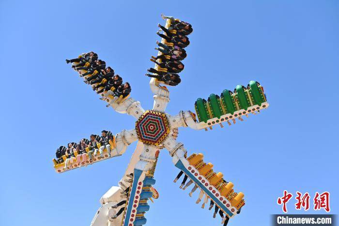 图为嘉峪关方特欢乐世界复园首日,游客体验空中项目。 李亚龙 摄