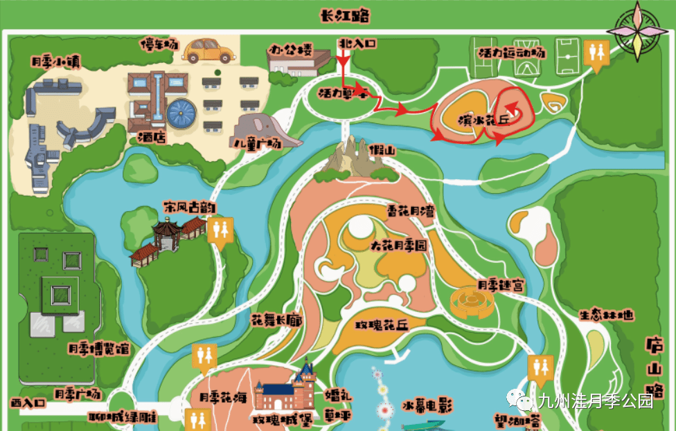 九州洼月季公园位于聊城高新区长江路与庐山路交叉口西南角,距离中心城区仅4公里。跨越这短短的距离,便可以尽情去追寻一段田园牧歌的浪漫春天。