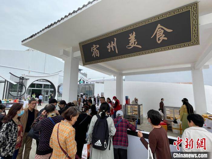 中新网杭州4月28日电(张煜欢) 砀山酥梨、萧县葡萄、符离集烧鸡、预制羊肉汤、安徽臭鳜鱼……28日,在位于杭州市中心的武林广场上,一波地道的安徽宿州美食在具有徽派韵味的展台前亮相,吸引往来民众驻足品鉴。