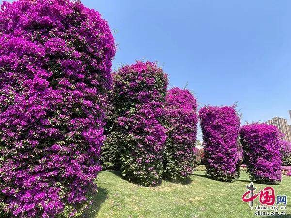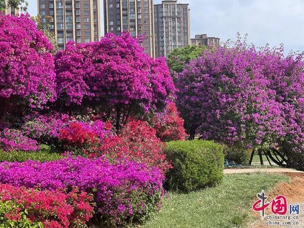 “绿叶衬花花万茂,红花映叶叶千茏”。当下,宜良三角梅进入了一年之中的最佳观赏期,粉色、红色、黄色、橙色的三角梅争奇斗艳,姹紫嫣红,特色花卉蓬勃发展,幸福之花深深扎根。(王建平)