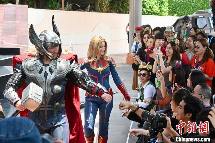 漫威“超级英雄”与宾客互动。 李志华 摄