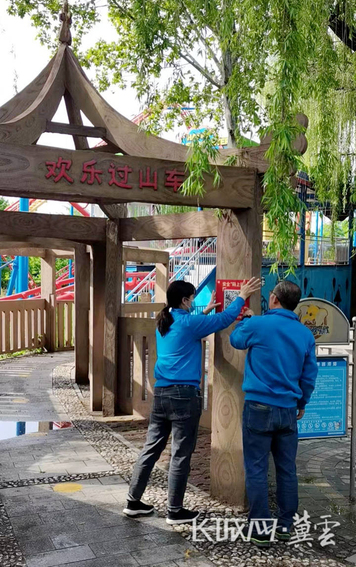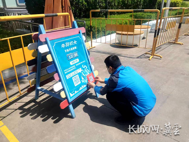 石家庄市植物园好时光儿童欢乐城工作人员张贴二维码。