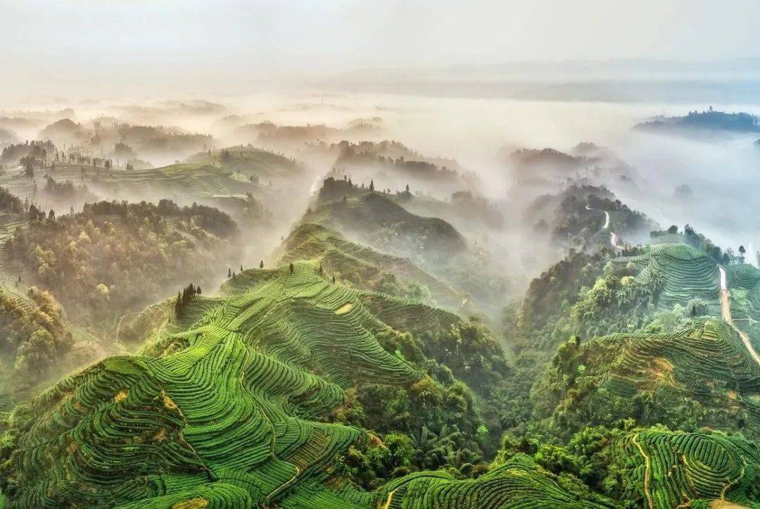 万亩茶海的浩瀚只是基本景色,你还能看到“大地指纹”的神奇,也能感受梯田茶园的壮丽,还能感受到“天空茶园”的震撼。