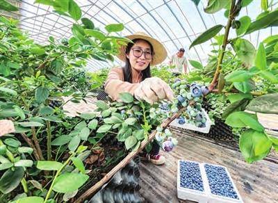 西青区辛口镇开心家庭农场“85后”新农人吕欣经过三年反复尝试种植的五十余亩蓝莓喜获丰收,现已陆续进入采收期。