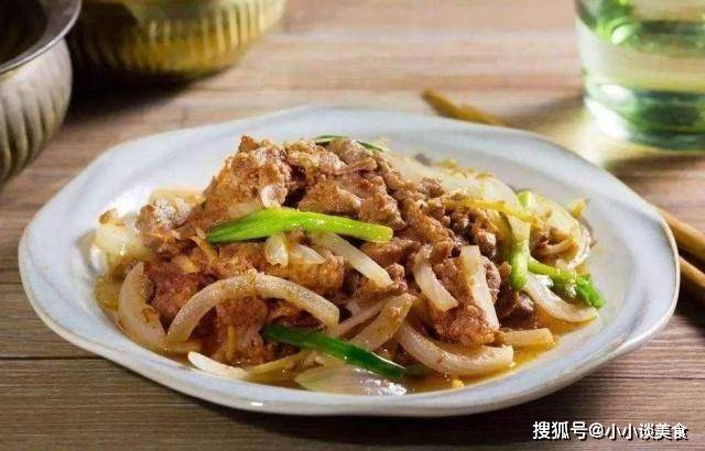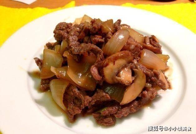 锅中加入适量食用油,将油加热至60%左右的热度,然后将腌制好的牛肉放入滑溜溜的锅中。滑锅的目的是快速炒牛肉。牛肉煮熟变色后,迅速取出,这样炸出来的牛肉鲜嫩可口,不老不烂。牛肉炒好后捞出装盘备用。锅中留下底油,然后加入洋葱并搅拌。搅拌的过程中可以开大火快速炒。