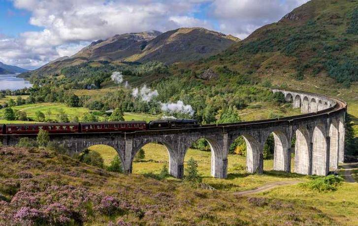 这列高地蒸汽火车又被称为「霍格华兹特快车」,它以列车在哈利波特》(Harry Potter)电影中出现而闻名,最大的特色,就是它会行经举世知名的格伦菲南高架桥,这是电影中前往霍格华兹时,最常出现的一座桥梁,游客可以在此领略苏格兰高地的魅力,并欣赏城堡、古都和山林湖泊的美丽。