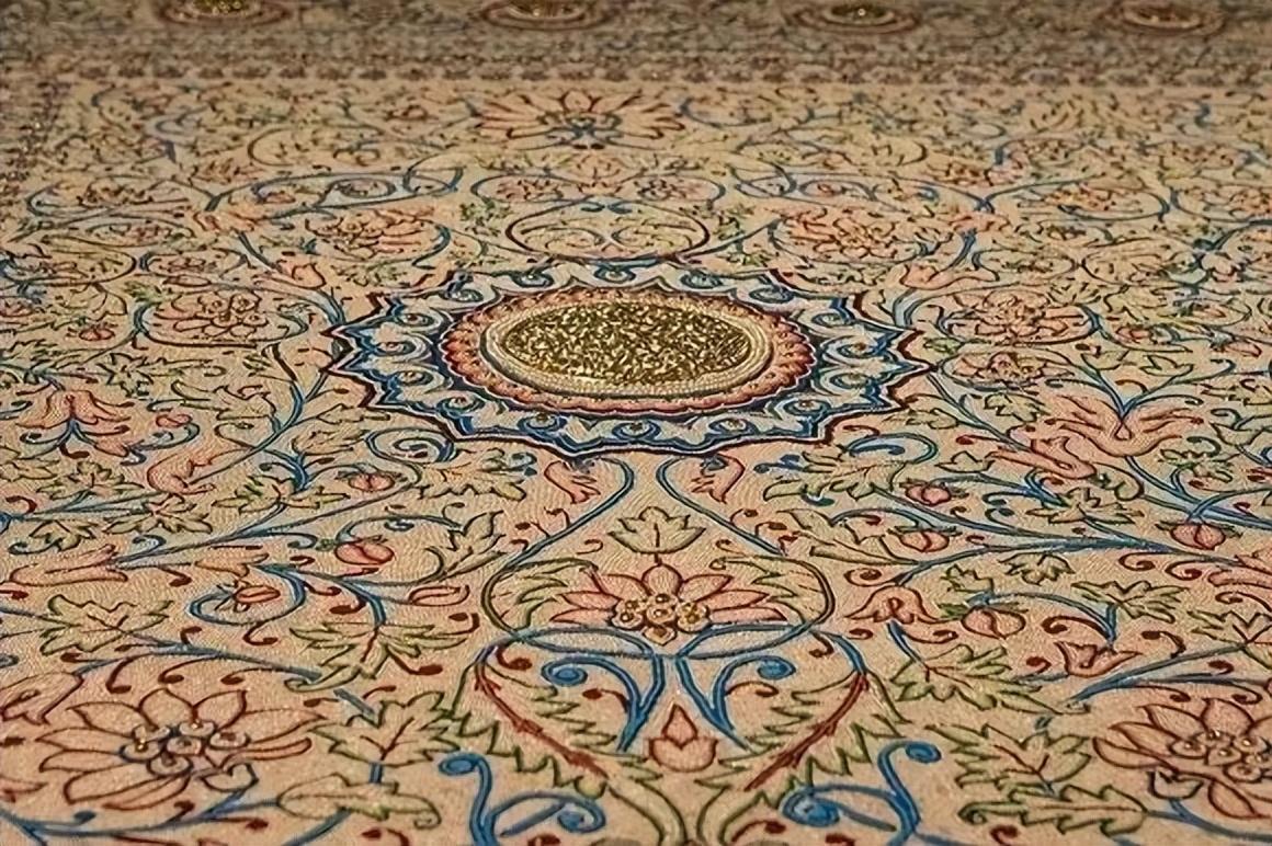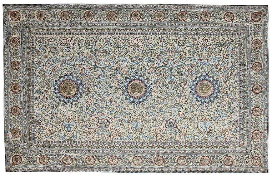 著名的巴罗达珍珠地毯是18世纪晚期的印度地毯,绣有一百多万颗珍珠,再加上祖母绿、蓝宝石和钻石,无疑是最令人印象深刻的作品之一。