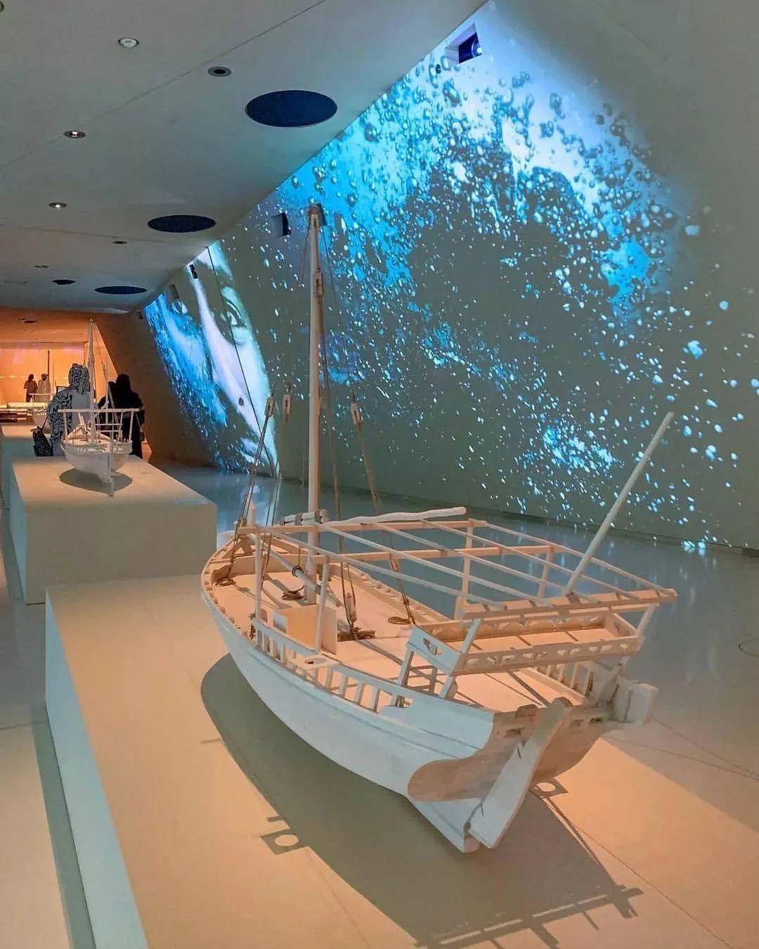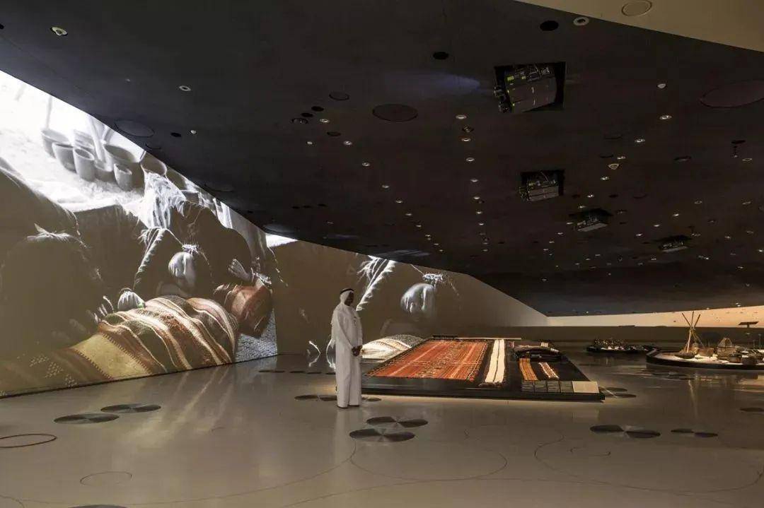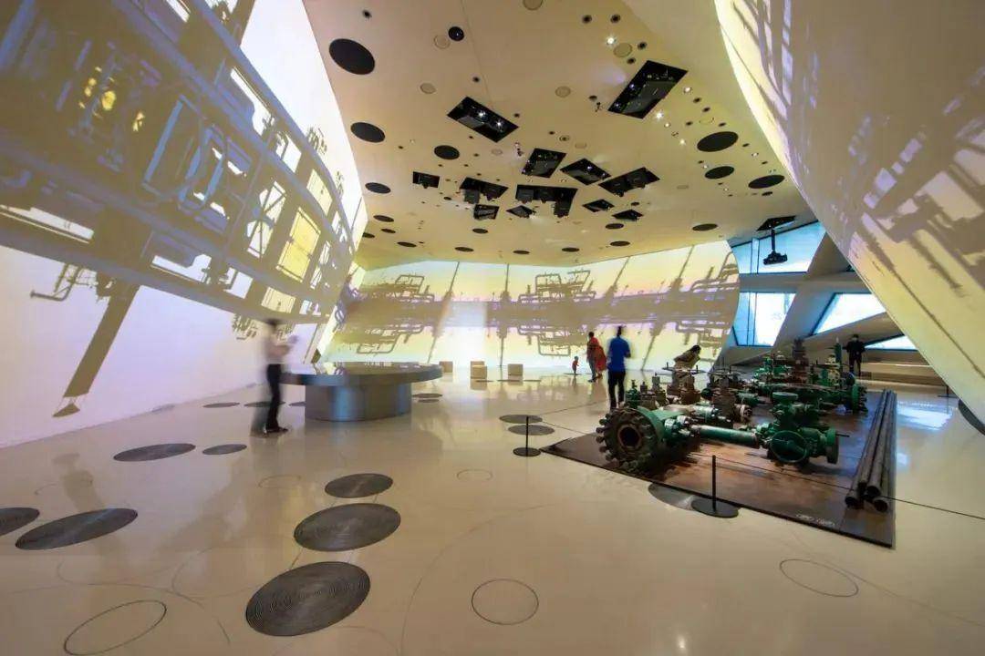 卡塔尔国家博物馆内蜿蜒的展馆长廊长1.5公里、占地52000平方米,透过一系列独特且包罗万象的环境,带领访客步入一场旅途,从建筑空间、音乐、诗歌、口述史学、气味、考古文物、画作、纪念艺术电影等方面,生动演绎着属于卡塔尔的故事。馆内的11个陈列展馆,带领访客穿越卡塔尔从数百万年前的一个半岛,演变成今天现代多元的国际城市的一段漫长历史。