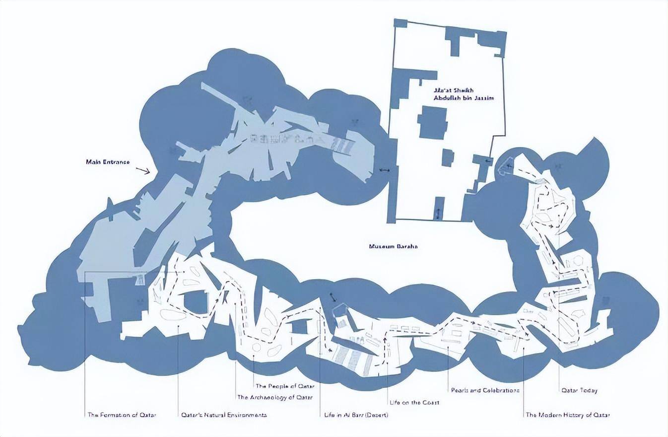 展览分为三个主题区:卡塔尔的起源、生活在卡塔尔和卡塔尔当代史-按时间顺序描述该国从史前到今天的历史,特别关注该国的自然环境、悠久的海洋传统、艺术遗产、战后工业发展和未来发展方案。