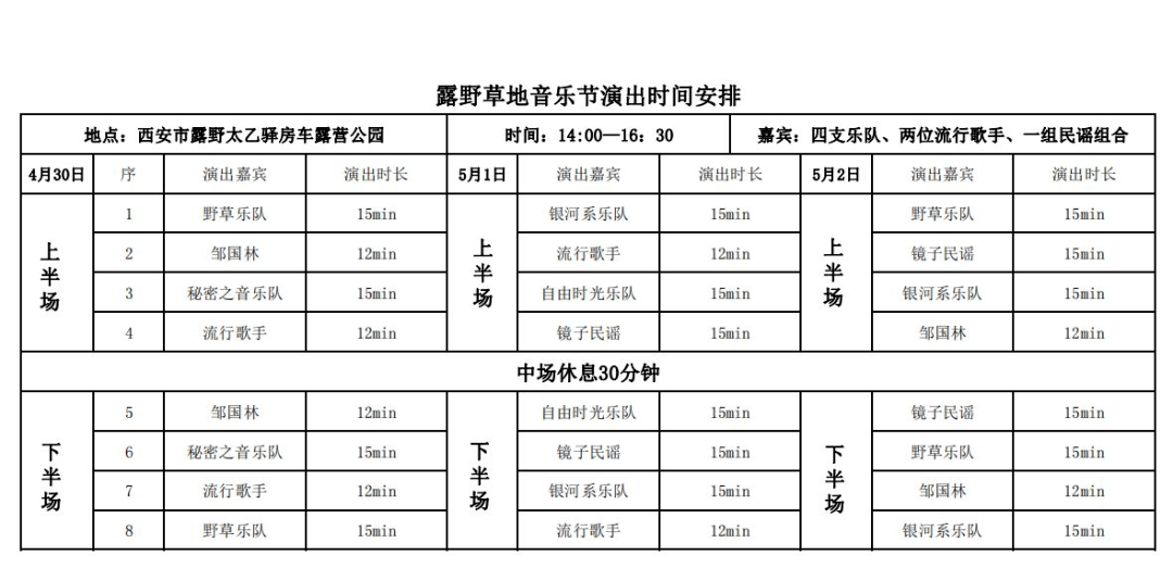活动内容:组织西安市原创音乐乐队、街头艺术家以及音乐学院、艺术家前往长安区太乙宫开展大型音乐演出活动,丰富劳动者的业余文化生活,激发劳动者干事创业的信心,引导广大劳动者通过音乐的方式欢度节日,为我市实现“六个打造”奋斗目标,提供强有力的精神支撑。