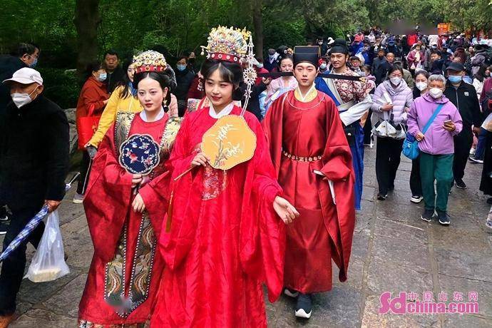 “五一”假期,千佛山风景名胜区让“三月三”民俗文化庙会持续升温精彩继续,为游客准备了汉服巡游、文艺演出、特色市集、非遗展示等板块,汇集了曲艺民俗表演、面塑、糖画等非遗工艺品定制,数十种地方土特产品、风味小吃展销,还有国风舞蹈、历山赐福等可观可感可体验的活动环节,为游客提供一份色香味形俱佳的游园大餐。