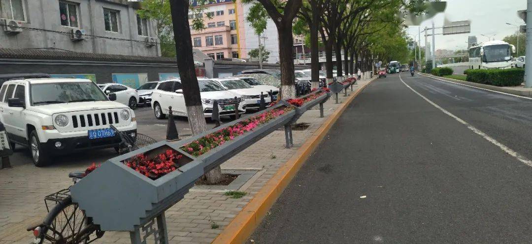 平安大街沿线中间分车带、地安门地铁口、荷花市场广场绿地以自然花境形式进行地栽花卉布置,精致的生态组合花境,形成色彩鲜艳的基底。