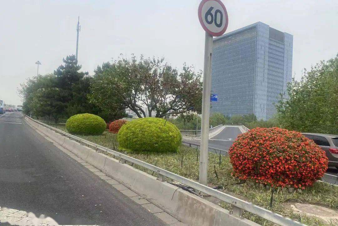 通过花球的立体色彩骨架点缀,与地面平面花卉材料融合,形成高低错落的特色花卉景观。在城市重要道路二环路(天宁寺桥)、三环路(马甸桥)等4处绿地内,以点缀56个椭圆型花球小品结合地栽花卉形成“绚丽花带”。