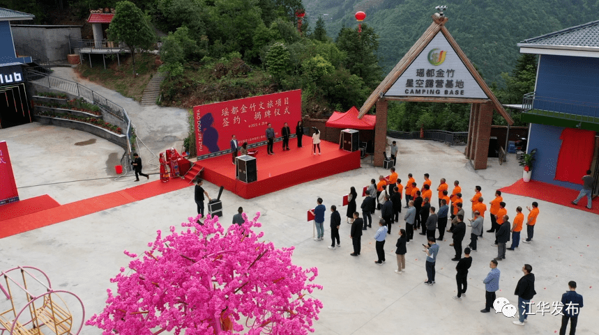 4月28日,瑶都金竹文旅项目举行签约仪式,并举行星空露营基地揭牌仪式。县政协主席义洁,县人大常委会副主任黎明柳,副县长刘晓萍,县政协副主席、工商联主席黎氢出席仪式。黎明柳主持仪式。