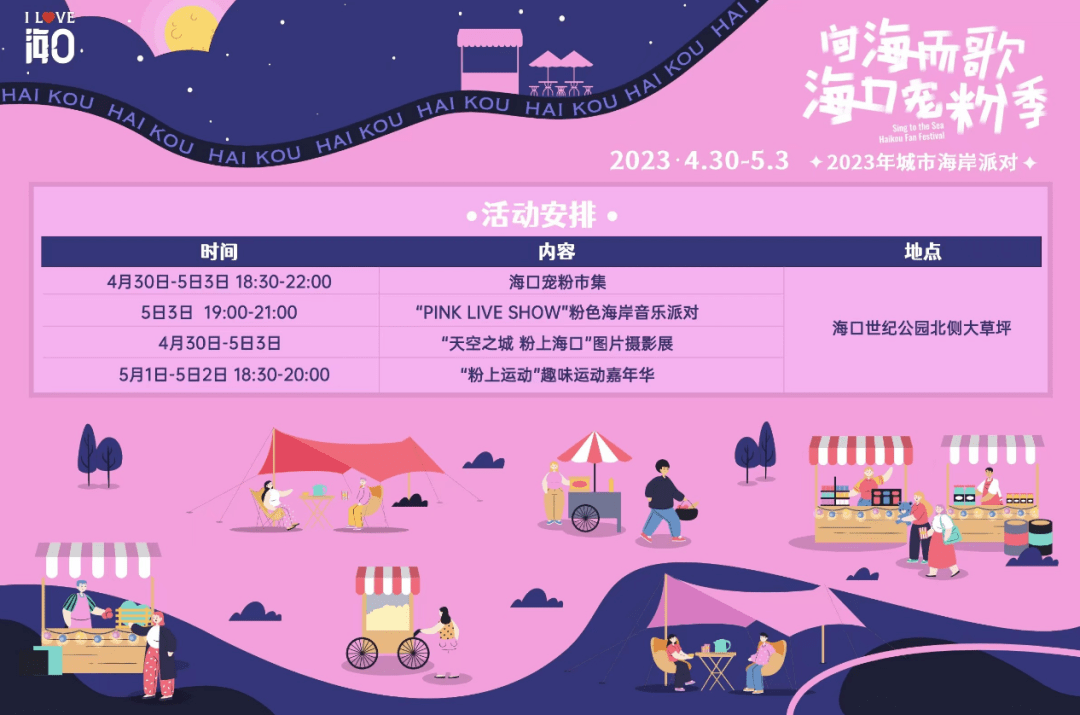 今年活动以“向海而歌·海口宠粉季”为主题,现场不仅包括宠粉市集、趣味运动嘉年华、粉色海岸音乐派对、图片摄影展等一系列新潮玩法,更有时代少年团海口演唱会大屏专场直播。一场时尚新潮的城市海岸派对即将开启,椰城海口将“宠粉”进行到底。