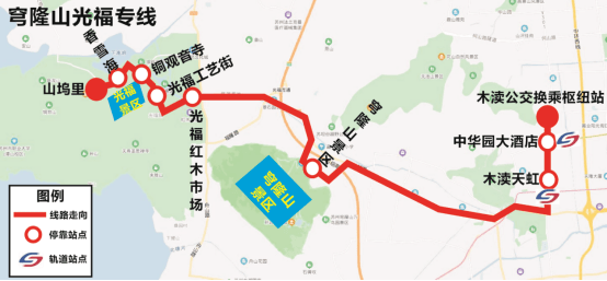 停靠站点:木渎公交换乘枢纽站、南浜、中华园大酒店、木渎天虹、木渎古镇严家花园、采香泾花木市、藏书、上泾村、穹窿山景区、光福红木市场、光福工艺街、铜观音寺、香雪海、山坞里。