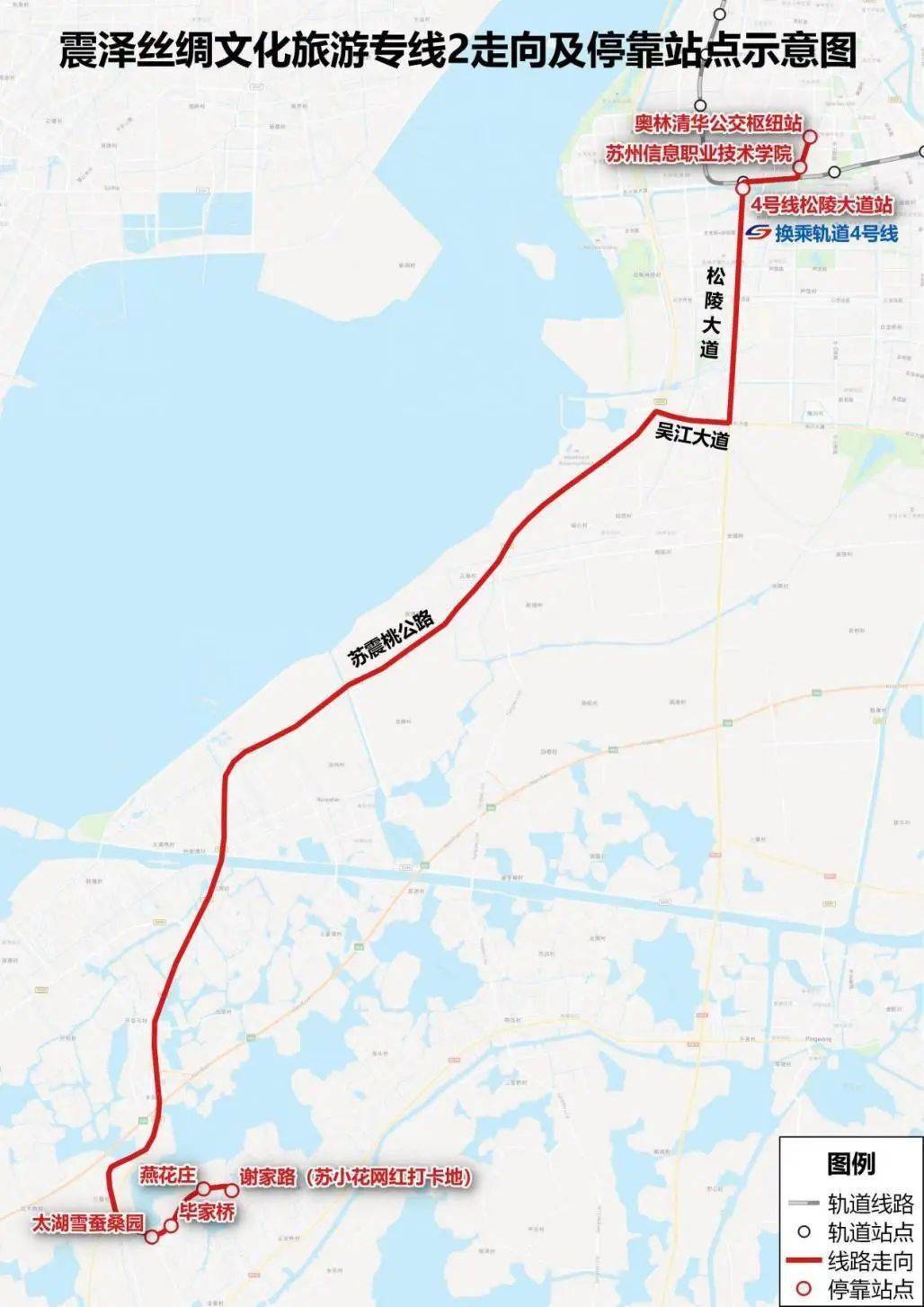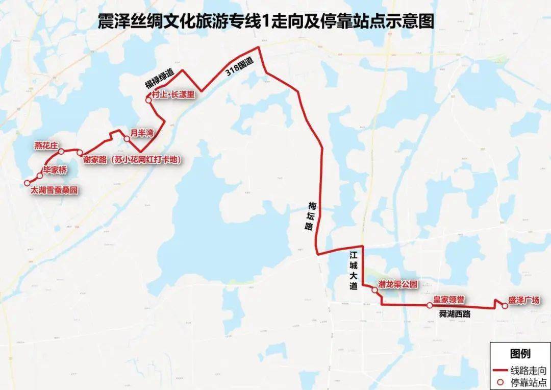 停靠站点:盛泽广场、皇家领誉、潜龙渠公园、村上.长漾里、月半湾、谢家路(苏小花网红打卡地)、燕花庄、毕家桥、太湖雪蚕桑园。