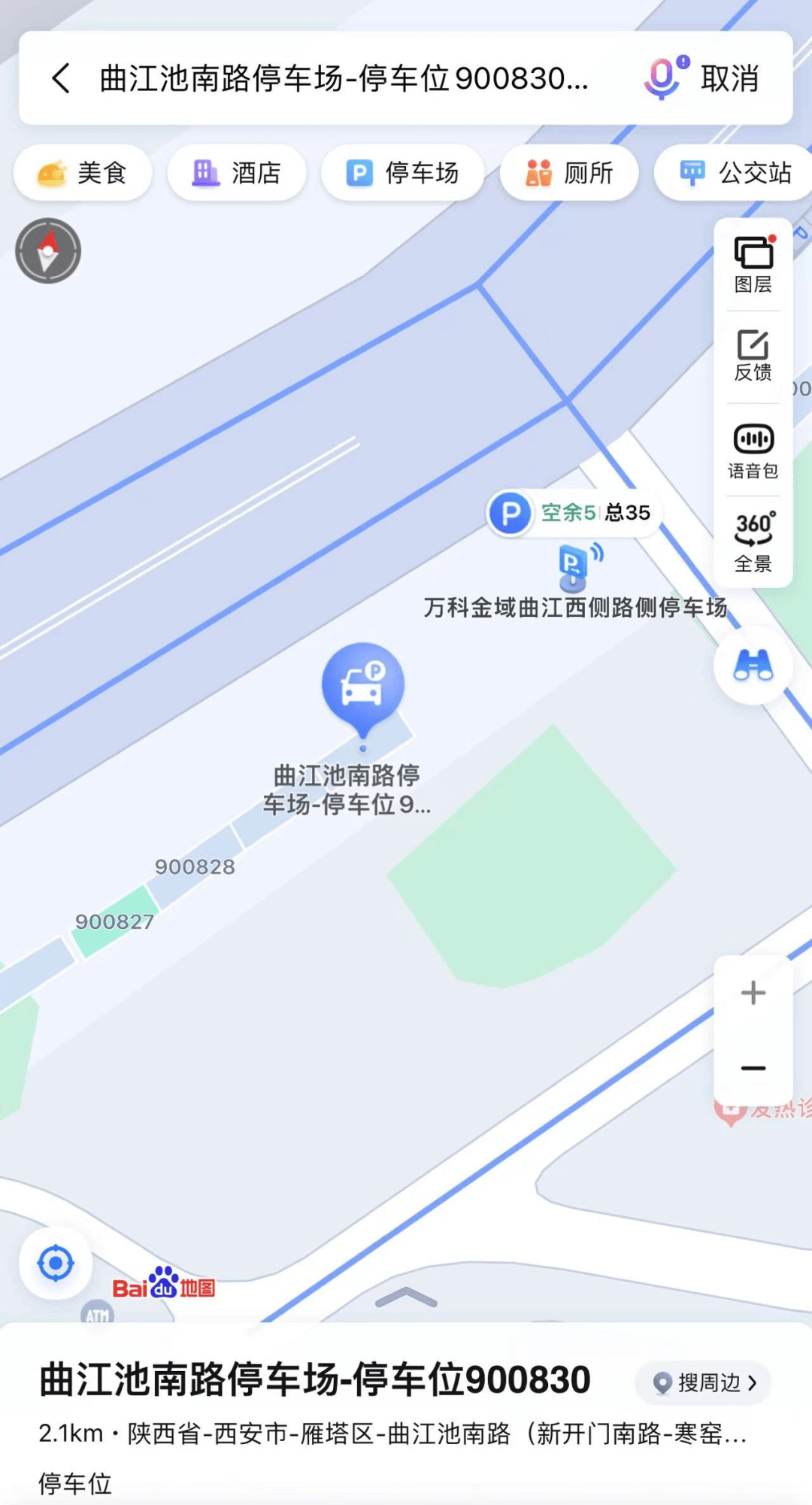 为增加便捷性,曲江停车携手百度,试点在“百度地图”APP上线曲江新区路内停车泊位,并实时显示泊位占用状态(灰色泊位代表泊位已经有车辆停放,绿色泊位代表泊位空闲),可以实现路内泊位的车位级的精准导航,为市民游客停车提供极大便利。