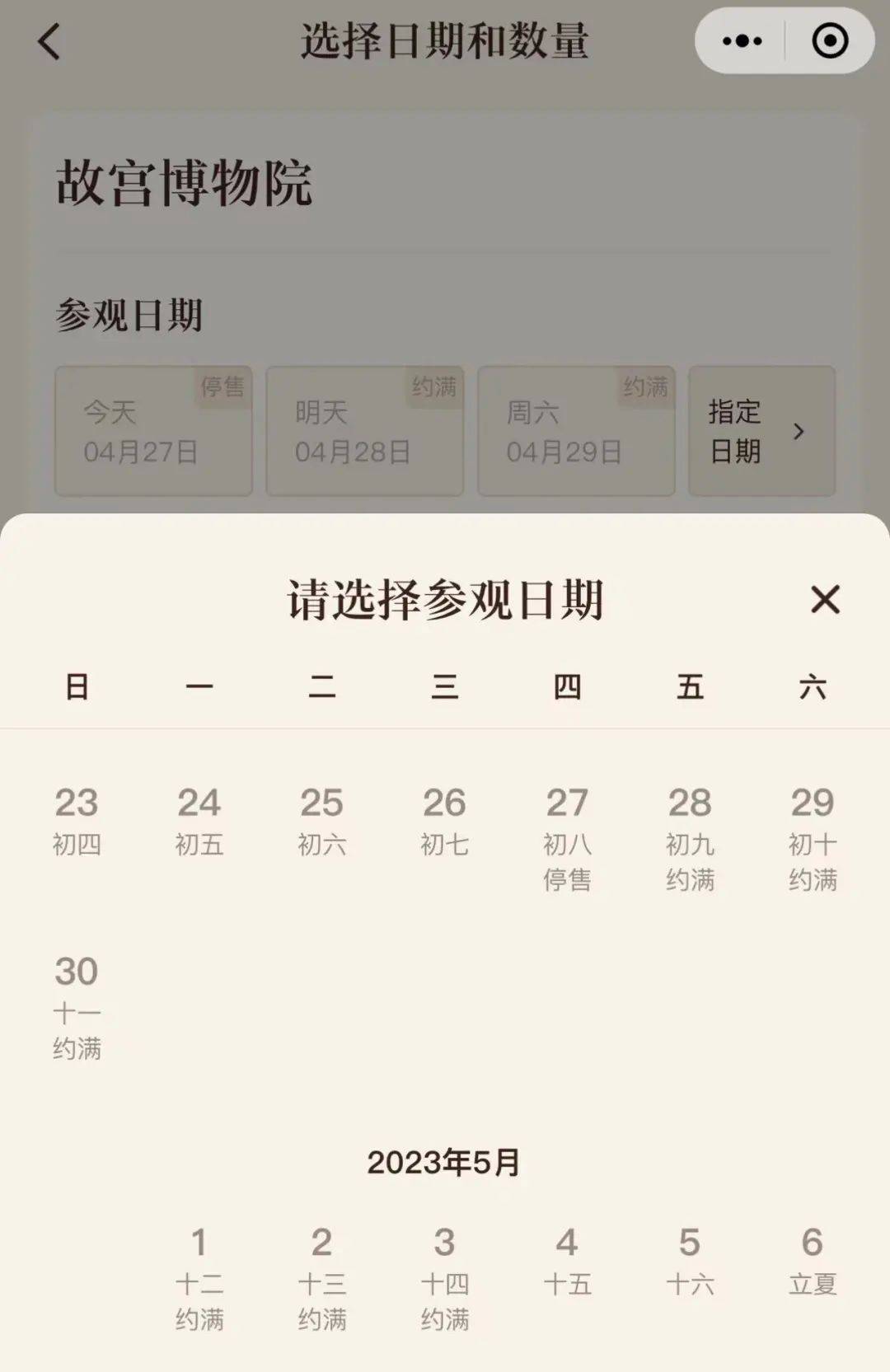 4月30日、5月1日门票已售完