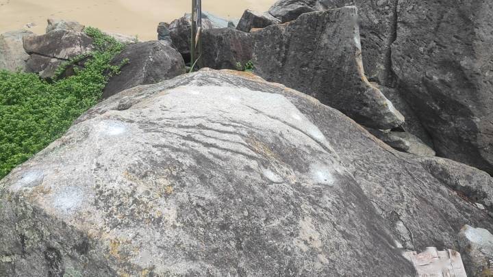 “更加奇妙的,是沙滩上的海阔盛景。”柯宗清说着“卖起关子”,带着我们驻足沙滩中部。眼前,一个大型的礁石,重重叠叠、大小不等、内部空空,边上介绍牌写着“音乐石”。