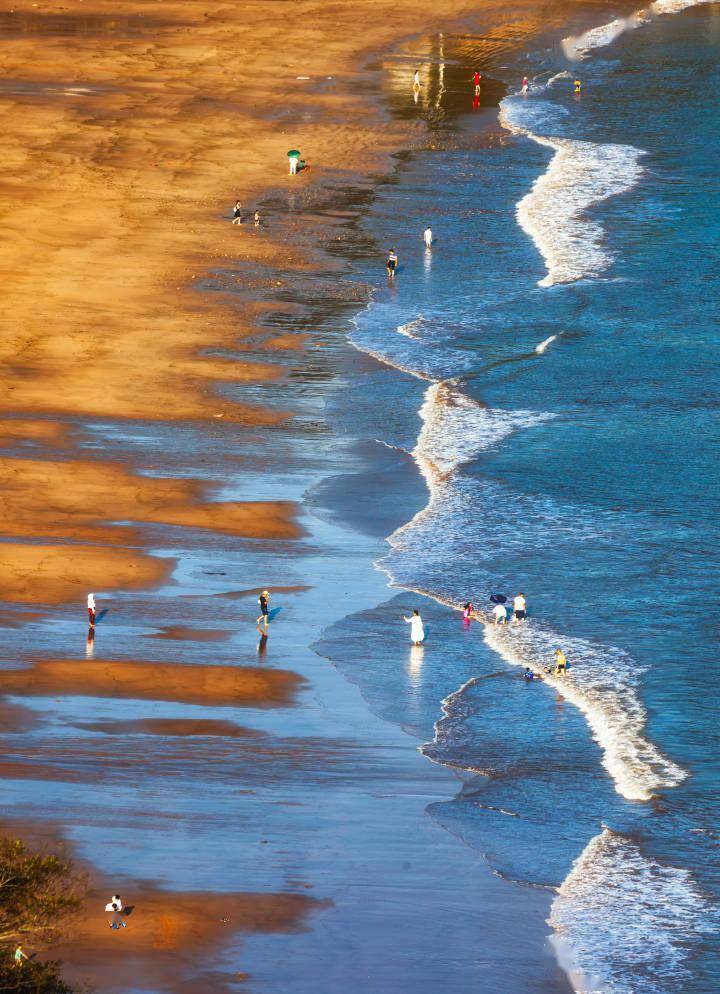 假期将至,我们驱车沿着苍南168黄金海岸线——“中国东海岸一号公路”,来到渔寮湾。目之所及,金沙滩宽阔无际,海天一线。从上面俯视,金黄沙滩在海岸形成一个大大的C型。