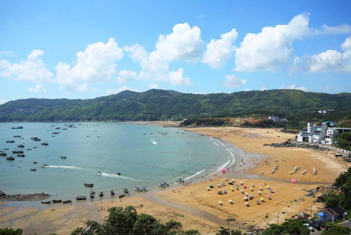 得天独厚的地理优势和自然条件,让这片金沙滩熠熠生辉。柯宗清说,由于村里发展集体增收项目,将沙滩打造成旅游景区开放,刚开始仅清理了沙滩,叫停了部分污染环境的渔业养殖项目。随着游客越来越多,渔民们了陆陆续续开办农家乐、民宿。景区周边也逐年打造了海滨浴场、滨海栈道、环海景观绿道等。30年来,门票从10元涨到了40元。