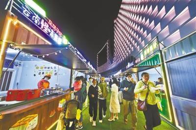 美食多多,吃喝玩乐,一站式满足。在集市街区,烤生蚝、章鱼烧、泰国冰淇淋、芝士烤榴莲……几十余家风味小吃店一字排开,琳琅满目,吸引了不少消费者驻足品尝,在夏夜的微风中,市民们纷纷走出家门走进街区,感受新潮的夜市刺激,体验独特的夜色魅力。“我家就住这附近,出行很方便,以后下了班一定带家人过来转转。”家住中原区的叶女士说。