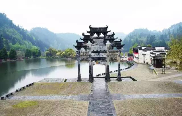 西递村建房多用黑色大理石,两条清泉穿村而过,99条高墙深巷,各具特色的古民居,使游客如置身迷宫。村头有座明万历六年(公元1578)建的三间四柱五楼的青石牌坊,峥嵘巍峨,结构精巧,是胡氏家族地位显赫的象征。