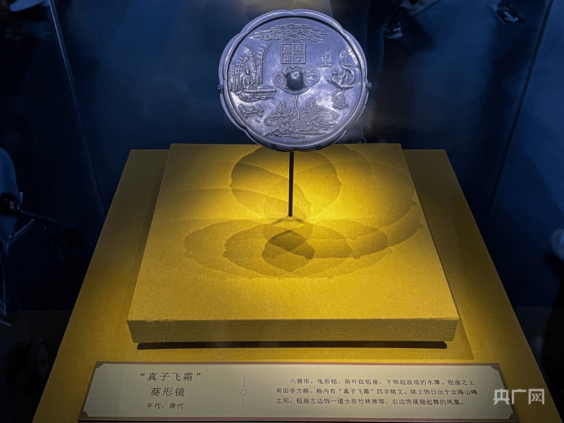 现场展出的唐代“真子飞霜”葵形镜(央广网发 贺婧婷 摄)