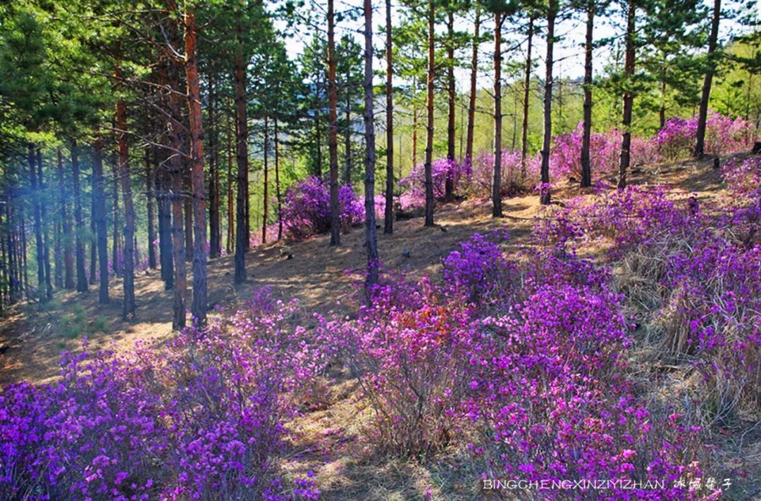 喜欢兴安杜鹃既因为她不畏严寒的性格,又格外的青睐它那艳而不俗的色彩。看过贵州的千里杜鹃花,那场面真是壮观,红的、黄的、白的,但却没有这紫色的杜鹃花。紫色的兴安杜鹃,是最北方独有浪漫。