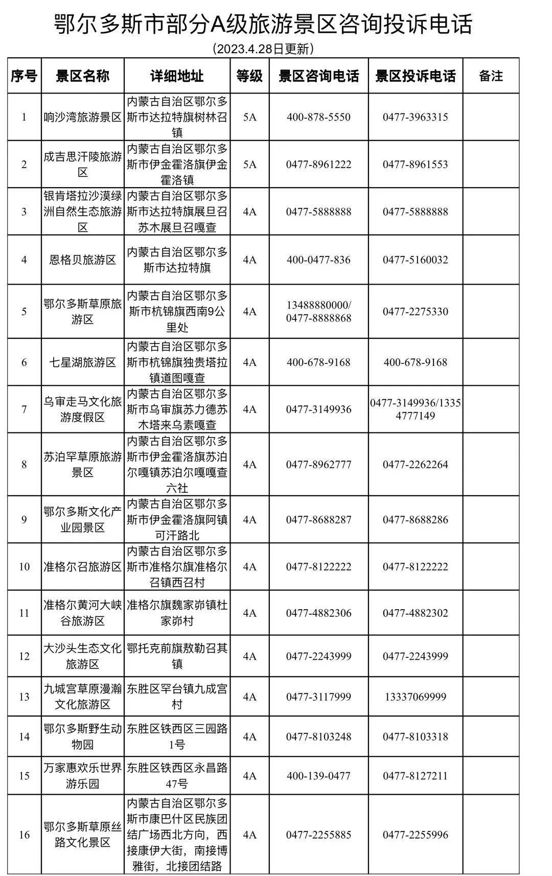 尊敬的市民、游客朋友,您在参观游览景区过程中,如遇问题请拨打景区咨询、投诉电话或直接拨打0477-12345进行咨询、投诉。祝您旅程顺利、生活愉快!