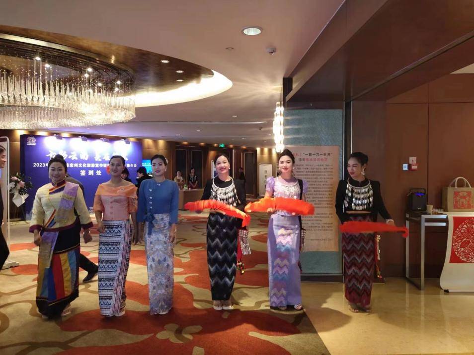 在推介会场外,德宏还设立了德宏印象品鉴区,傣族剪纸、咖啡、德昂酸茶、坚果、干巴、柠檬、小米辣、涮涮辣等德宏旅游特色产品进行展示,深受欢迎。