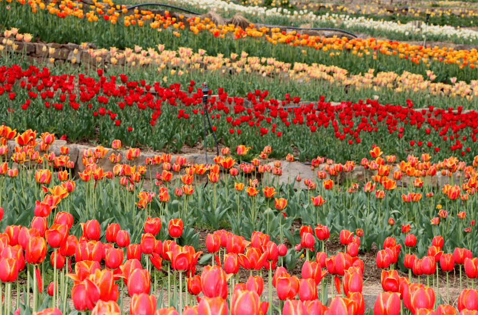 景观提升布置总面积约2.3万平方米,采用复层花海、混合花境、花卉混播、立体花卉景观等多样化的花卉景观形式,打造园区整体缤纷热烈的景观,形成了三大花海景观天田山、万花广场、国际馆周边,南北路组成的海棠大道环线,中华园艺展示区10个重点主题展园,包括北京园、上海园等,结合璀璨夺目的花灯,打造世园公园炫彩的花花世界。