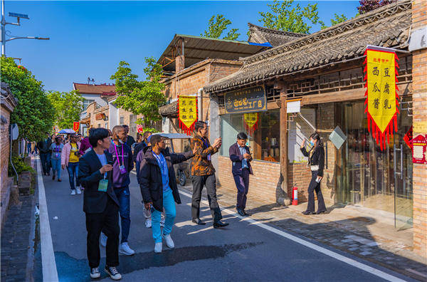 “这就是我们村的‘网红’打卡地——幸福路。”在张庄村接待处讲解员文静的带领下,来自30多个国家的80多位留学生在“幸福路”上感受张庄村的特色乡村产业。藏红花基地、玫瑰花醋、张庄布鞋、春光油坊等一个个别具特色的小店,让游客流连驻足。